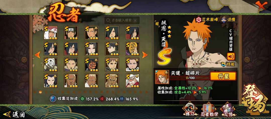传说自来也✨漂泊带土✨百战鼬全48s✨神农✨须佐卡卡西✨顶配2841w全高招