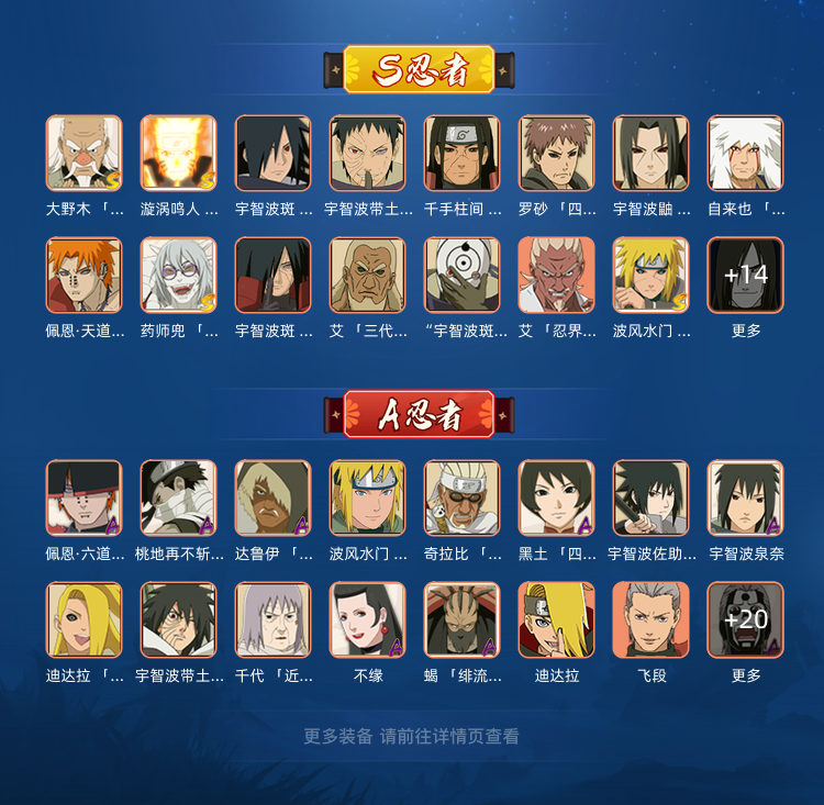 限制: 撤单率<1%才可租用此帐号装备描述:S忍者:纲手,大蛇丸,猿飞日斩,漩涡鸣人「九喇嘛连结」,春野樱「忍界大战」,自来也,自来也「仙人模式」,自来也「舞之豪杰」,纲手「百豪」,迈特凯「死门」,波风水门,