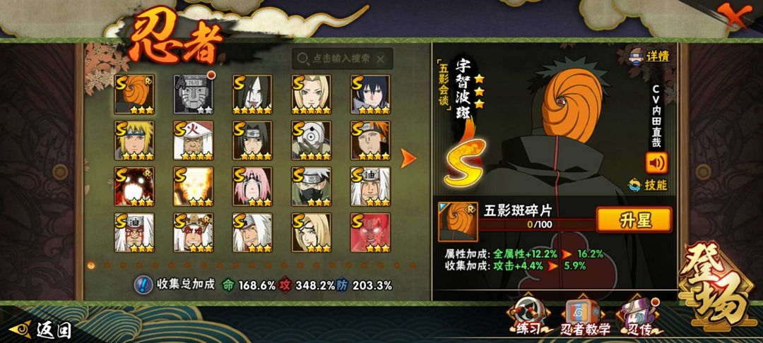 新忍法帖s⭕只缺2忍者⭕顶配全忍者❤2821万☀九喇嘛水门六尾鸣人☀漂泊带土☀黑绝☀51s101a☀