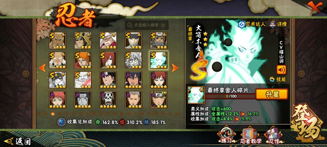 风影烈斗☀顶配51S3000万战榜29♥黑绝忍战带土艾失臂青春哥☀全套漂泊新春系列♑全部高招忍