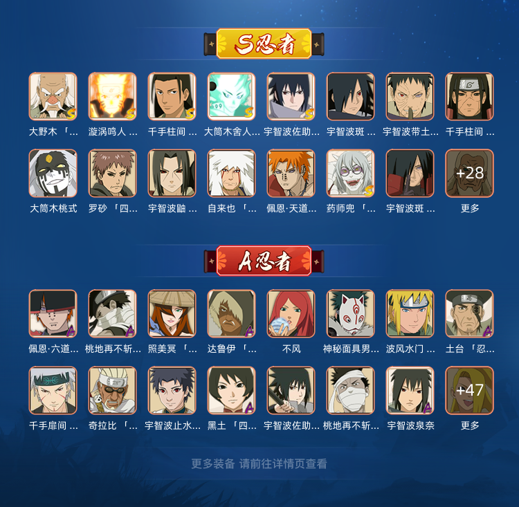 六尾鸣人43S♥60A传说自来也忍战樱♋忍战带土秽土水门秽土鼬⭐长门♥白面具九喇嘛♋忍战樱
