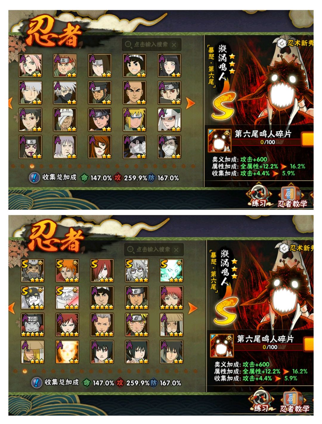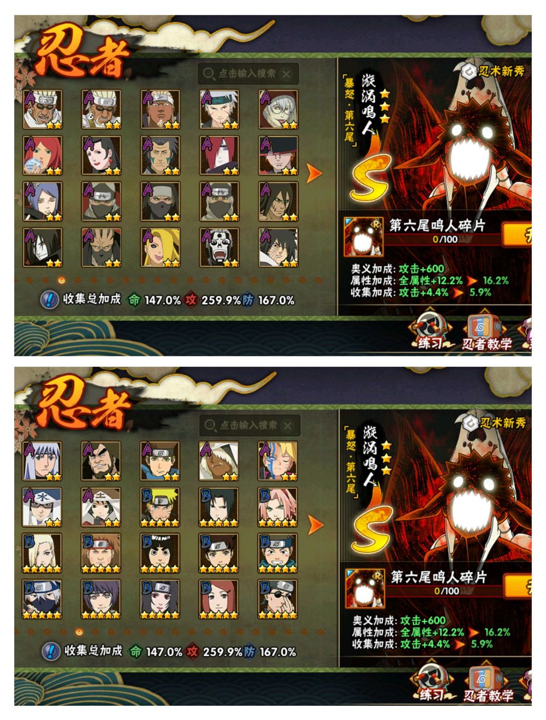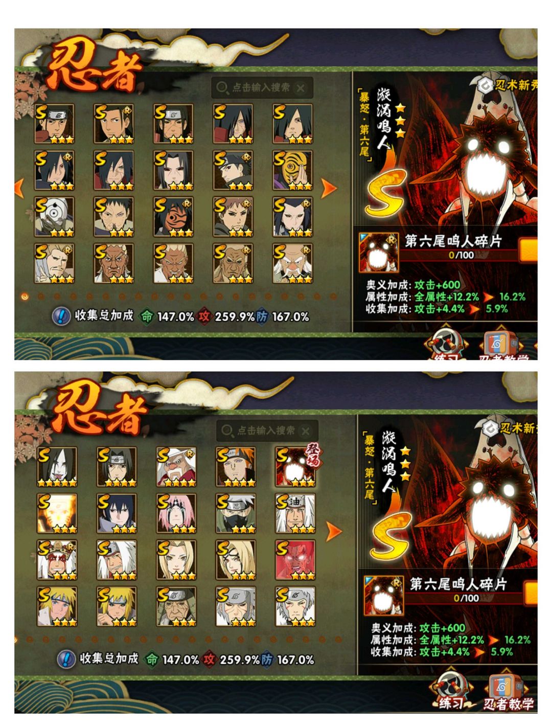 六尾鸣人绯流虎49S ⭐传说自来也大筒木舍人⭐须佐卡卡西止水⭐忍战雷影艾⭐忍战漂泊带土⭐天道超两千万