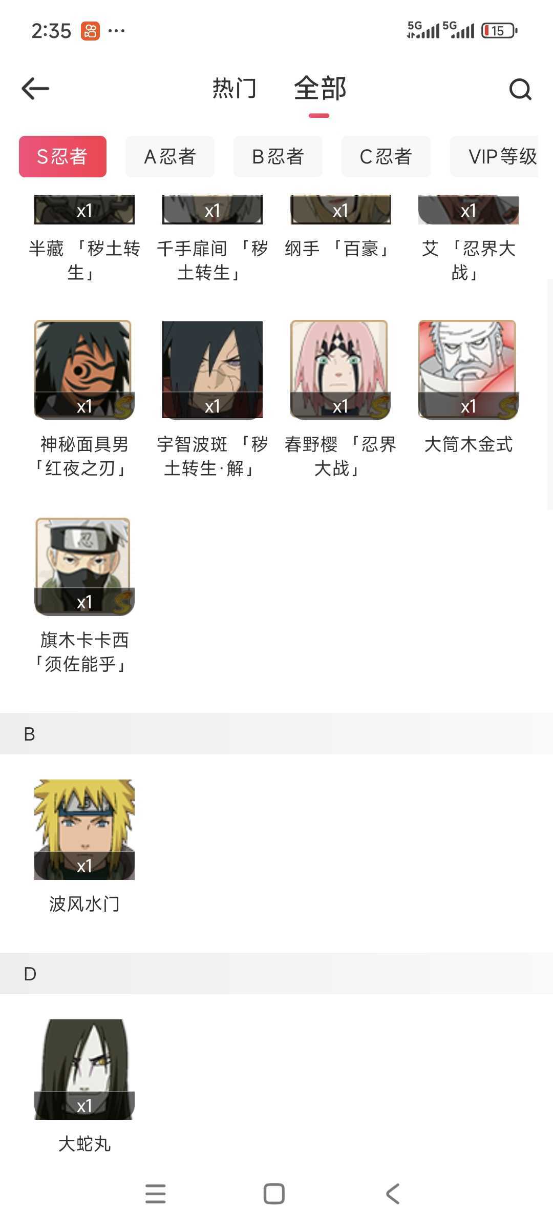 装备描述:欢迎来到超影租号小店,火影能带来快乐也你带来自闭。有梦想你也许就是火影忍者下个超影♥ 账号如标题。忍者看上图。不要动金币跟高招卷。 。账号可以段位赛。安卓2082 喜欢的话点收藏。 祝你游戏愉快O∩_∩O区