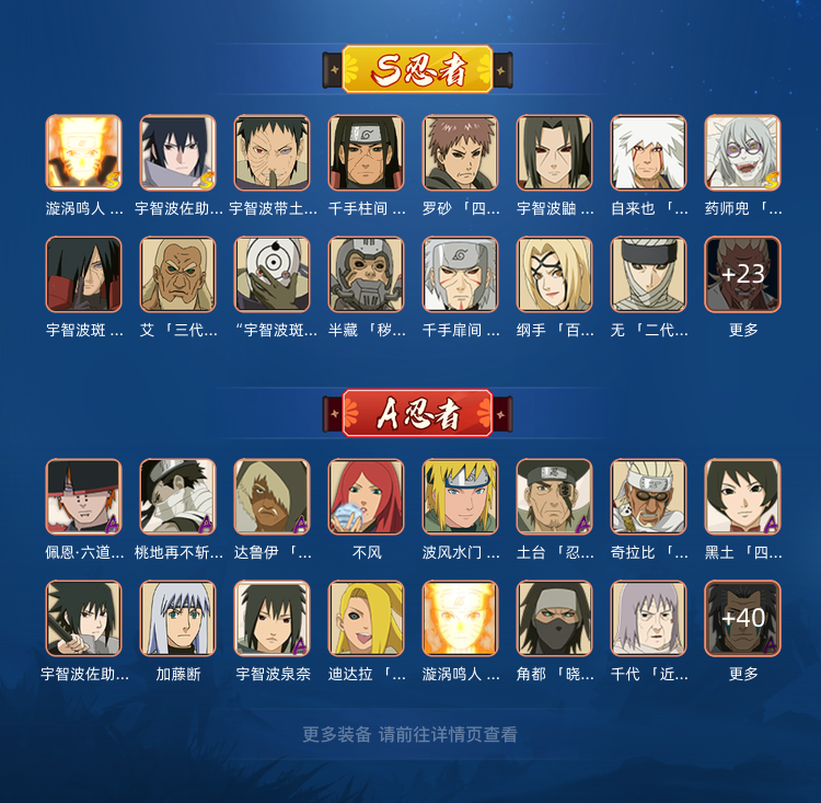 装备描述:漂泊佩恩✨忍战带土✨39S✨死门凯✨秽土柱间✨秽土斑✨白面具✨秽土水门✨九尾鸣人✨忍战小樱✨无✨金银角✨死三代✨虎皮✨秽土鼬✨半藏✨天道✨须佐佐助✨青年水门等等(详情可看图) 提示●游戏新机制:上号时上个租客还在线会直接显示在别处登陆,重新登录顶掉就行,我是不会恶意顶号。