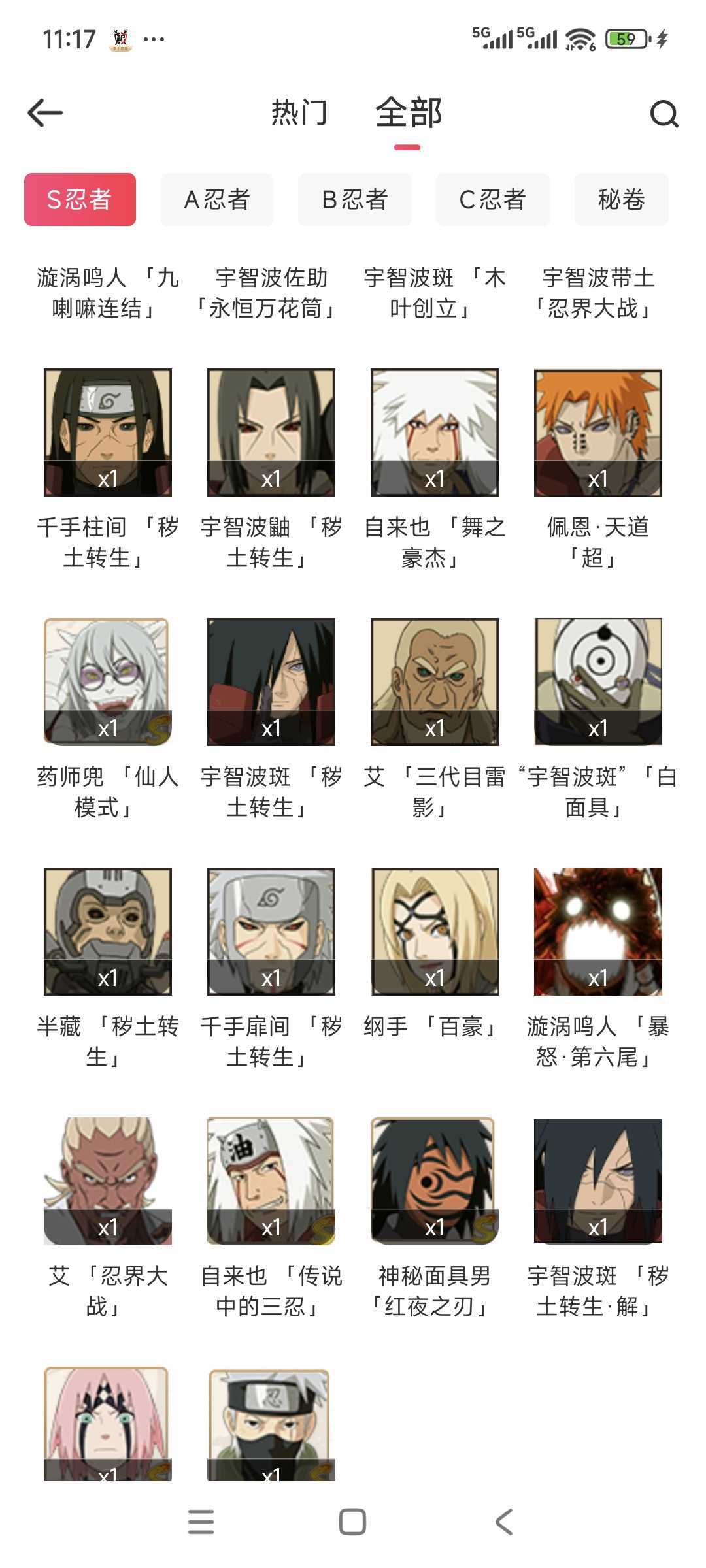 装备描述:租用号的人不要动账号里的东西 欢迎来到超影租号小店,火影能带来快乐也你带来自闭。有梦想你也许就是火影忍者下个超影♥ 账号如标题。忍者看上图。不要动金币跟高招卷。 。账号可以段位赛。安卓区。 喜欢的话点收藏。 祝你游戏愉快O∩_∩O