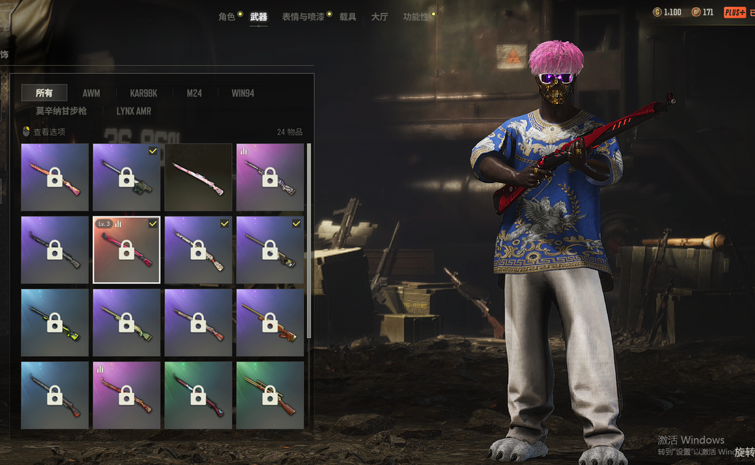 汉娜迈凯伦满级青龙762墨子m24紫烟黄金m4滑雪镜黑鬼黄金面具毒液陶洛斯AUG