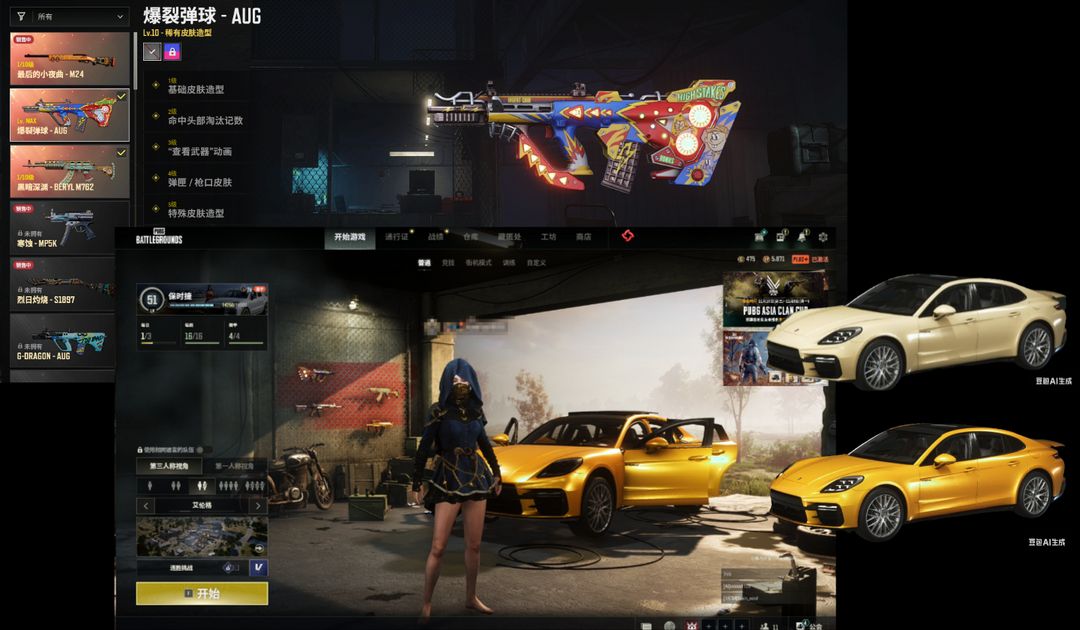 黄金保时捷帕拉梅拉+布加迪跑车⑩级爆裂蛋球AUG⚛️可排①黑暗M762滑雪镜25白战神女团