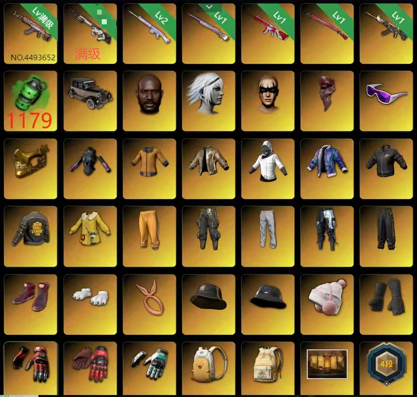 8神器✅满级火麒麟✅满级赛薄加彩烟✅尼尔黑鬼✅发光臂金面滑雪镜✅白战神黄东小黄鸭套装兔兔绷带
