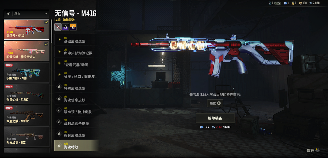 ④级无信号M4✅①级粉梦长眠德拉贡诺夫✅破碎元素AKM✅鎏金王朝M762✅猛虎猎手SLR✅镀金SKS