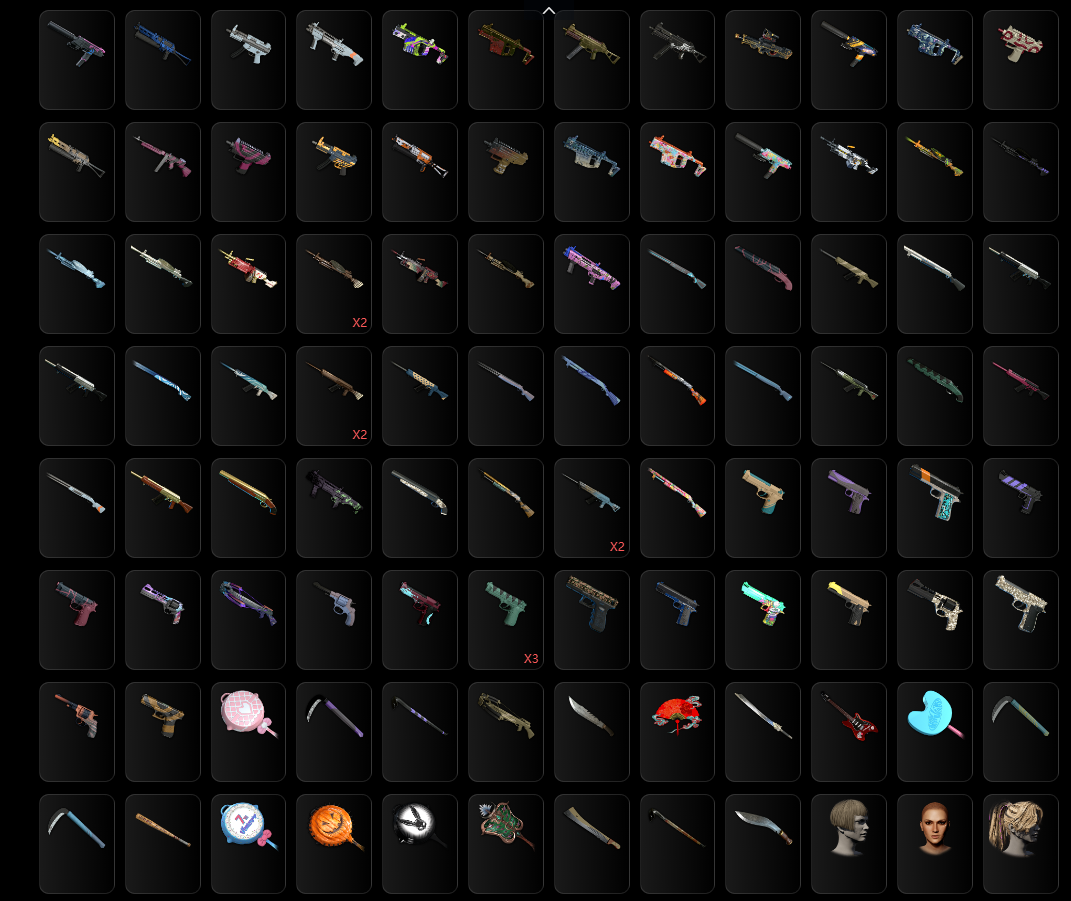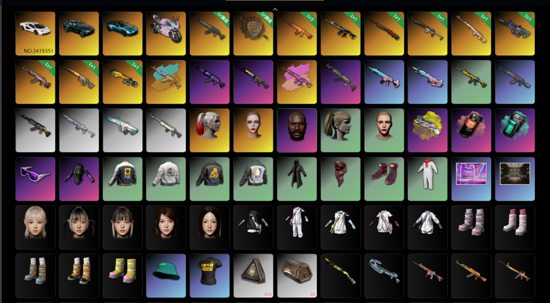 装备描述:兰博跑车/粉杜卡迪/全马丁/满NewJeans女团/16神器/满级金龙/满级唐三藏/霓虹AUG/孙悟空/异色猪八戒/沙悟净/弥诺AUG/ 火麒麟/无信号/南瓜M4/齿轮炮/小兔MK12/粉梦德拉贡/午夜98K/时光加农sks/妖魔之触ACE32/西游记全套/双彩色烟雾弹/烟枪/滑雪镜/发光套/老黑鬼/渔夫帽/爱的主打歌