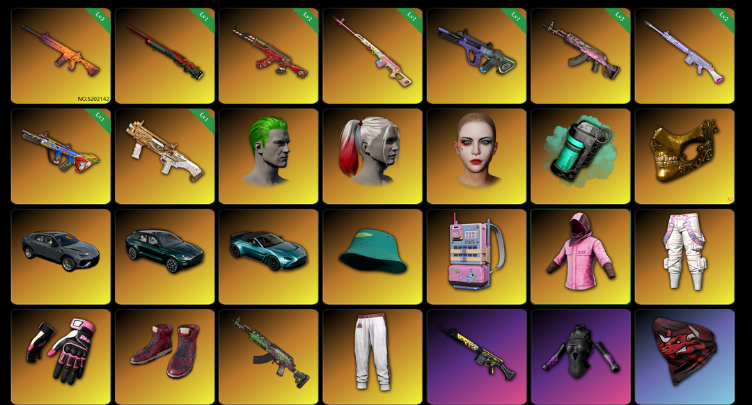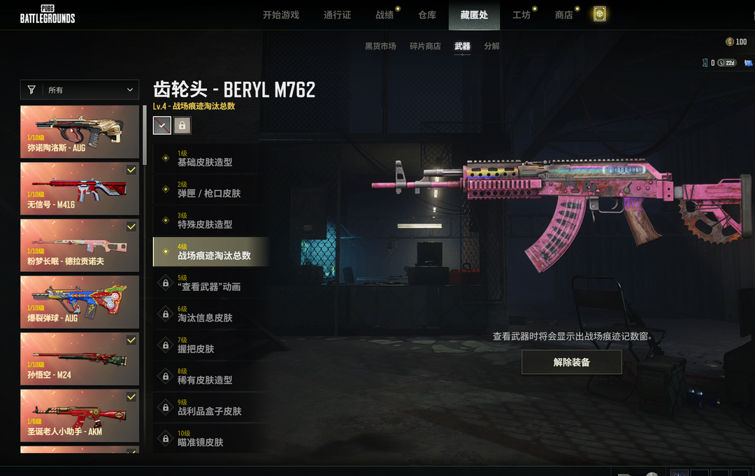 装备描述:可排位-双头-双丁-南瓜M4--孙悟空M24--圣诞AK-霓虹AUG-火麒麟-玩偶大炮-DBS