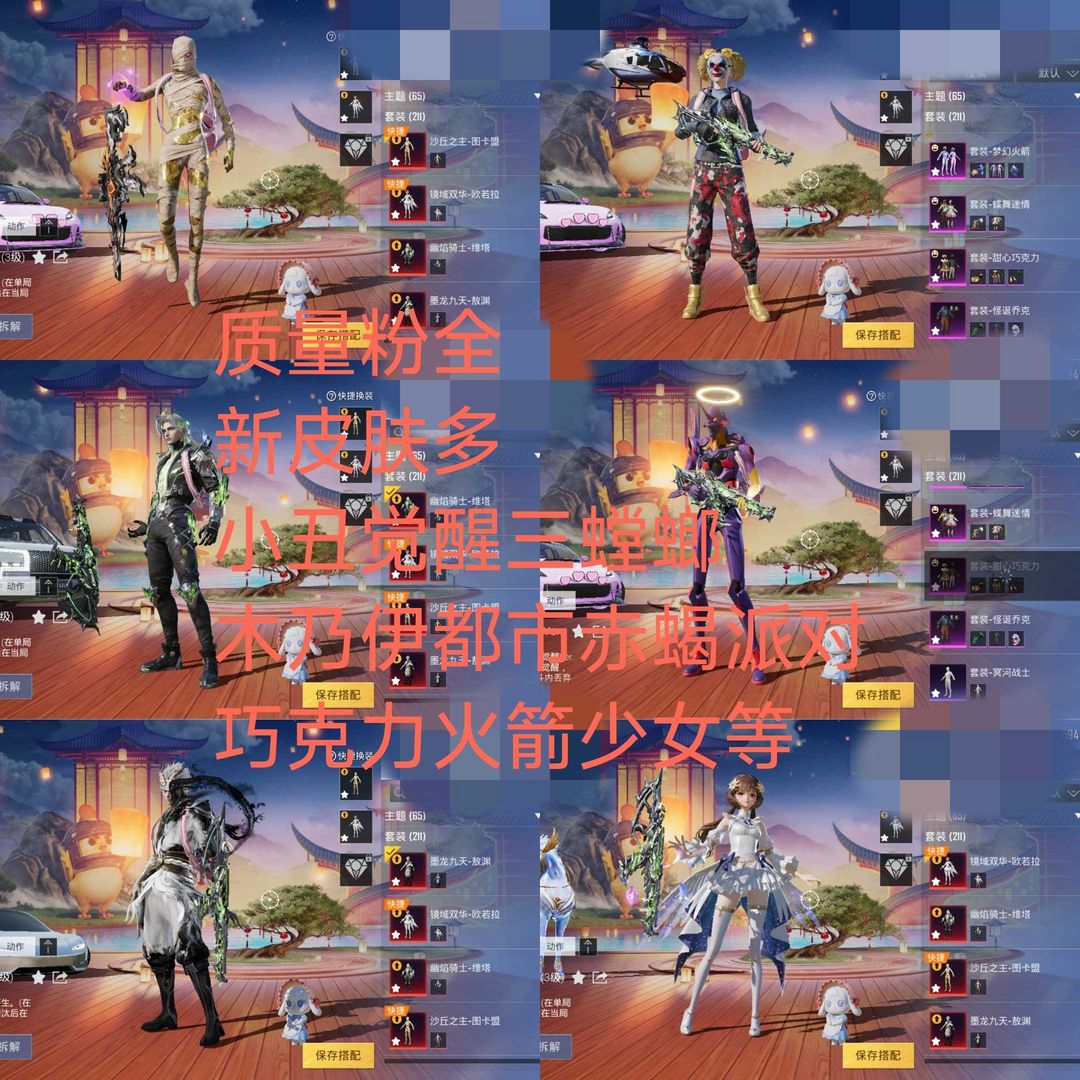 装备描述:祝各位老板玩的开心❤️❤️❤️❤️❤️❤️❤️❤️多多支持,谢谢 ⭐⭐⭐⭐⭐下单前请老板注意看这里! 该账号需要调画质可直接上号打!无需其他操作!⭐️⭐️⭐️ 此号装备性价比极高可参考其他号比较⭐️ 有任何问题欢迎老板看图一解决! 有做的不好的希望老板评论改正 感谢老板的支持!好评送时长! 画质不清晰需要用wifi或者极好的网络来运行! 介意的老板不要下单!下单后退款一律拒绝! 极品满素材❤️4红切换升级❤️图卡盟敖渊唯塔觉醒螳螂小丑木乃伊❤️放客都市赤蝎派对❤️墨龙8把计数枪 极品满素材❤️4红切换升级❤️图卡盟敖渊唯塔觉醒螳螂小丑木乃伊❤️放客都市赤蝎派对❤️墨龙8把计数枪 极品满素材❤️4红切换升级❤️图卡盟敖渊唯塔觉醒螳螂小丑木乃伊❤️放客都市赤蝎派对❤️墨龙8把计数枪