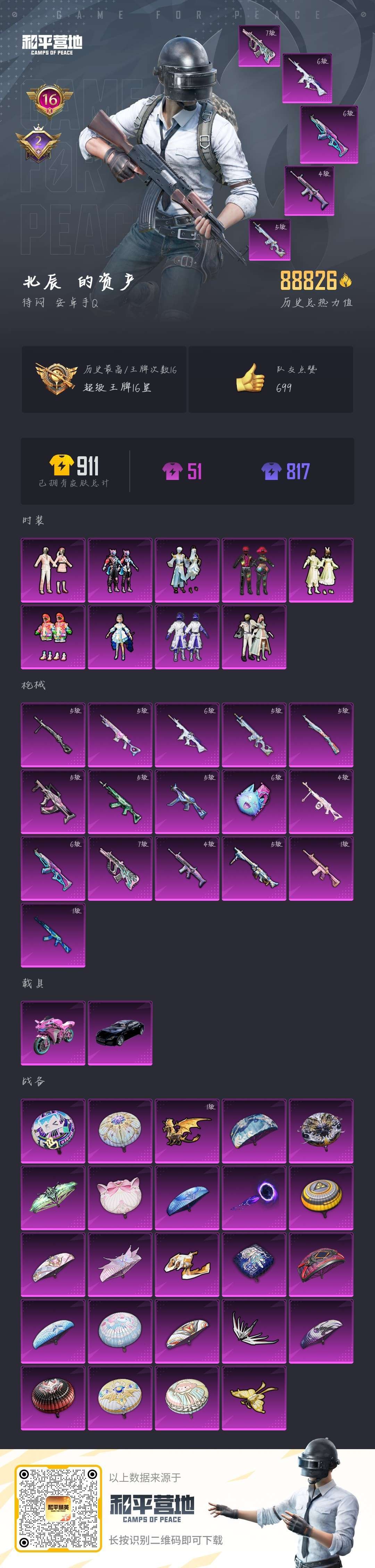 ✨8.8W热力值 ✨木乃伊 ✨满级梦之光华 ✨六级m4女娲灵识✨第五大道✨满级Aug