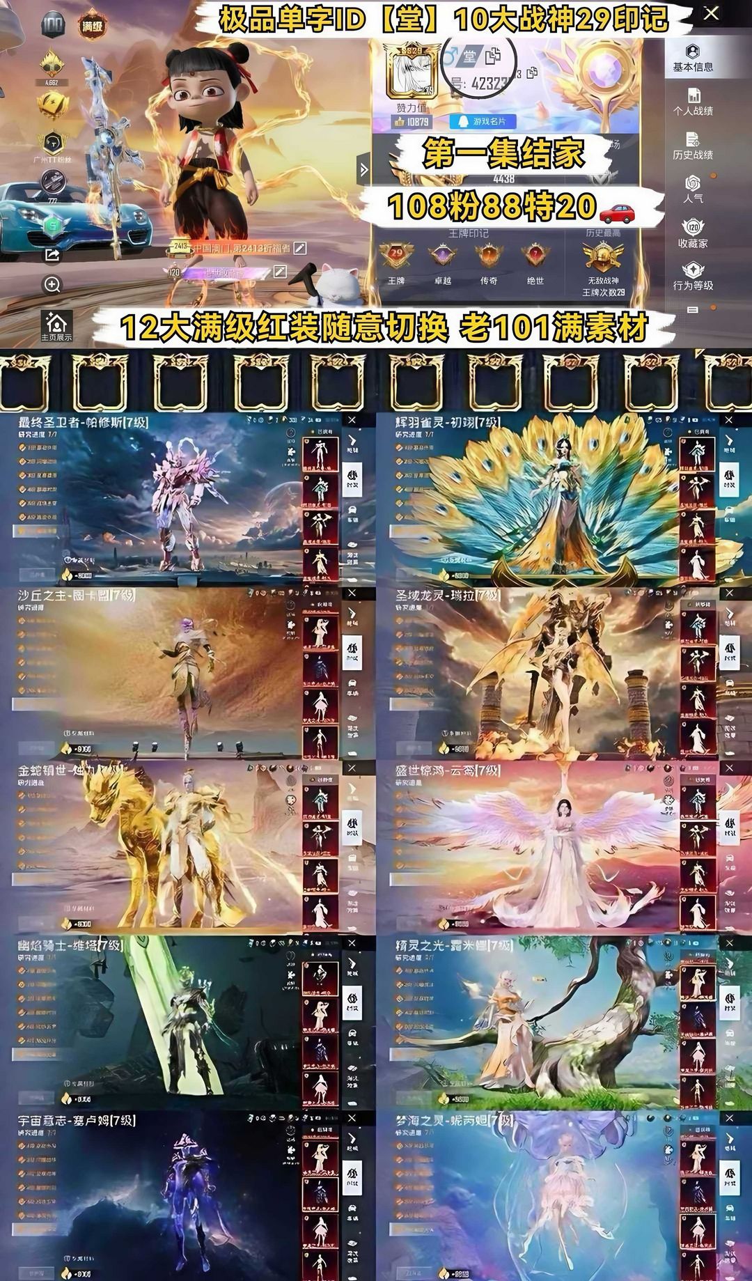 极品单字ID【堂】12红满级哪吒图卡盟✨第一集结家✨老101满素材108粉88特20车✨5级保时捷