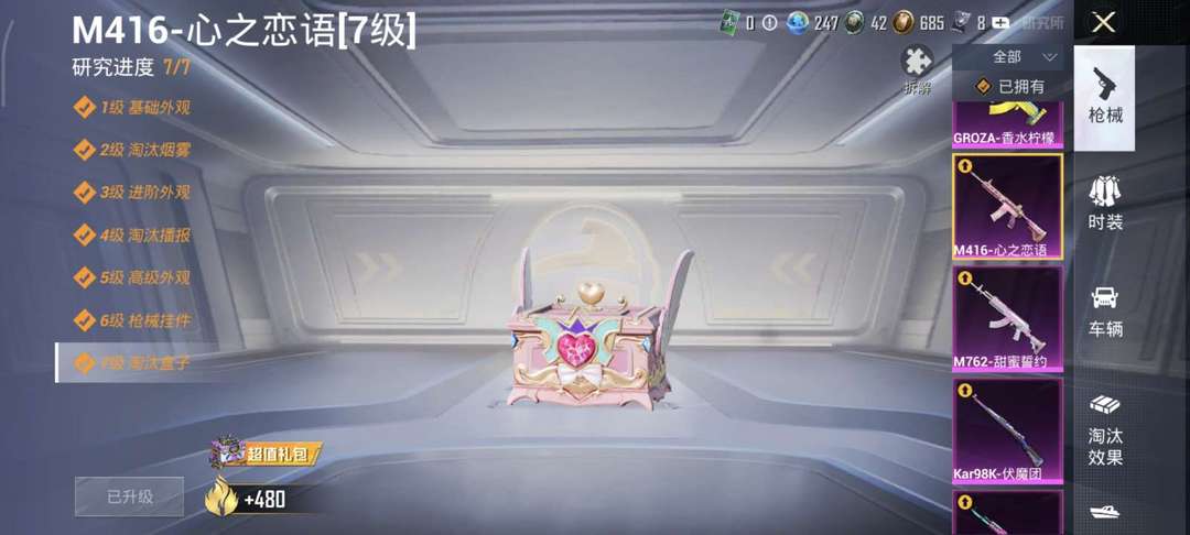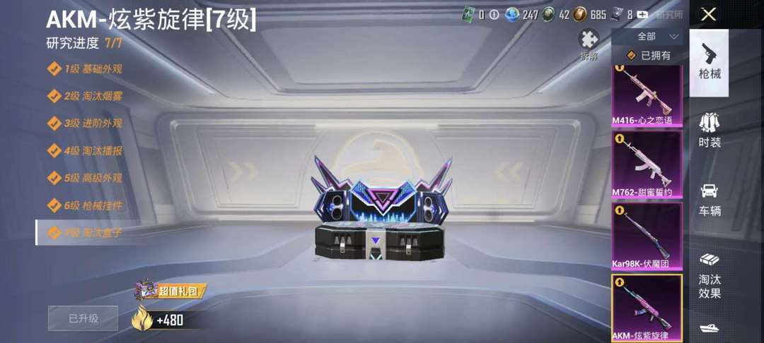 185套服装,八套粉装。285个枪皮,九把特效枪,三把满级,四个车皮,阿斯顿马丁等