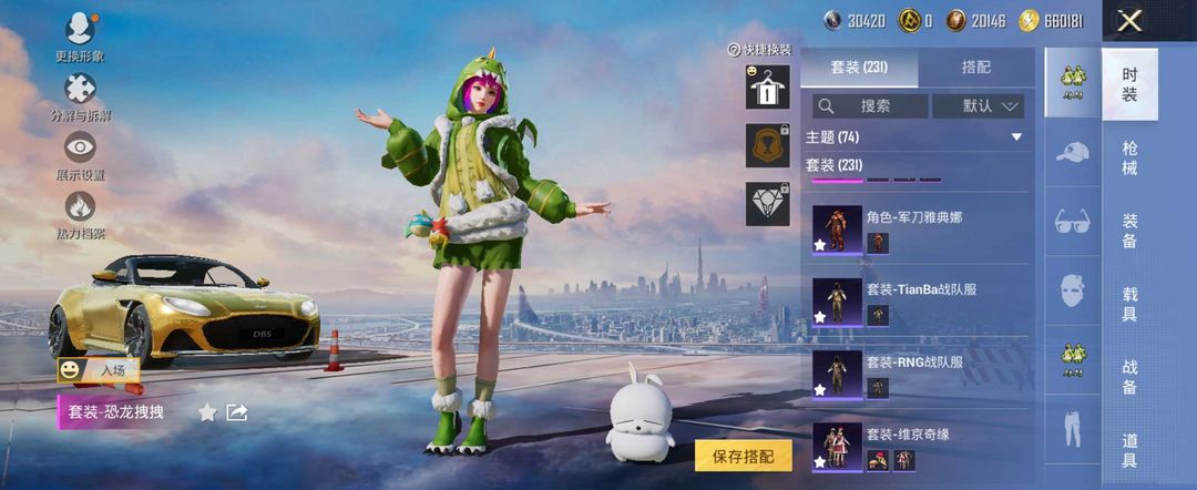 极品车库号✨13载具✨金玛莎✨新101✨小白龙✨红眼罩✨RNG战队服✨TB战队服✨满级甜蜜✨满级M4