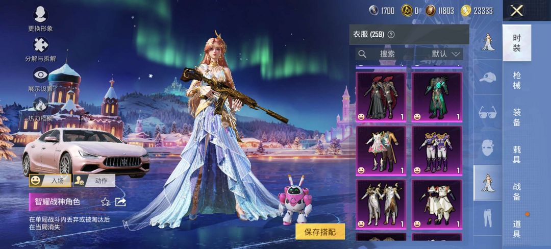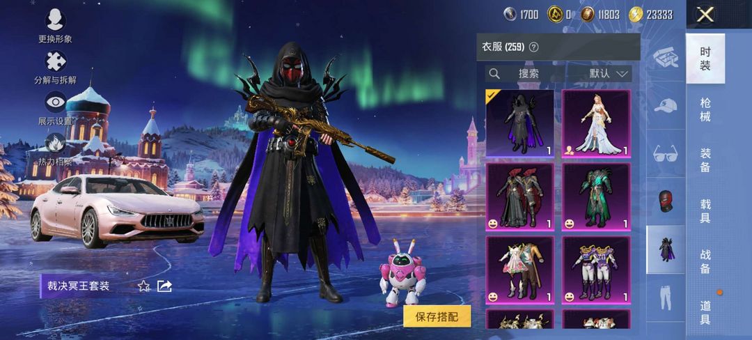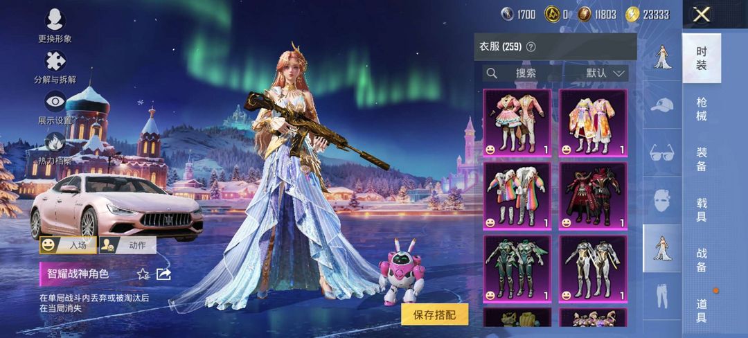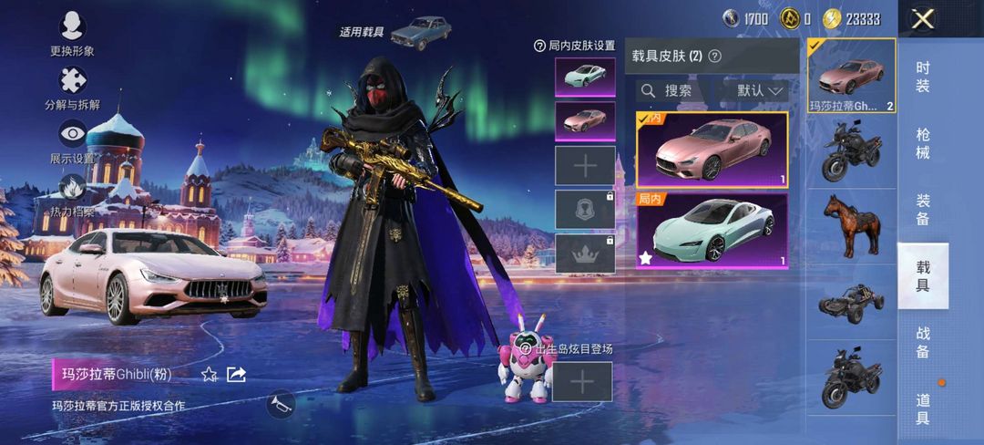 68粉装,五爪金龙,AWM升级枪满配,水滴蓝特斯拉,粉色玛莎拉蒂,背包头盔飞行器都有不少