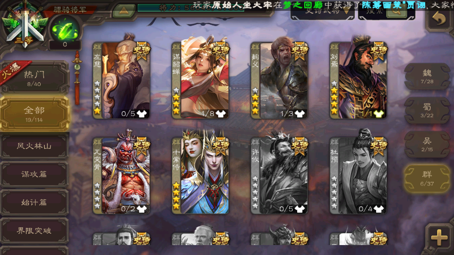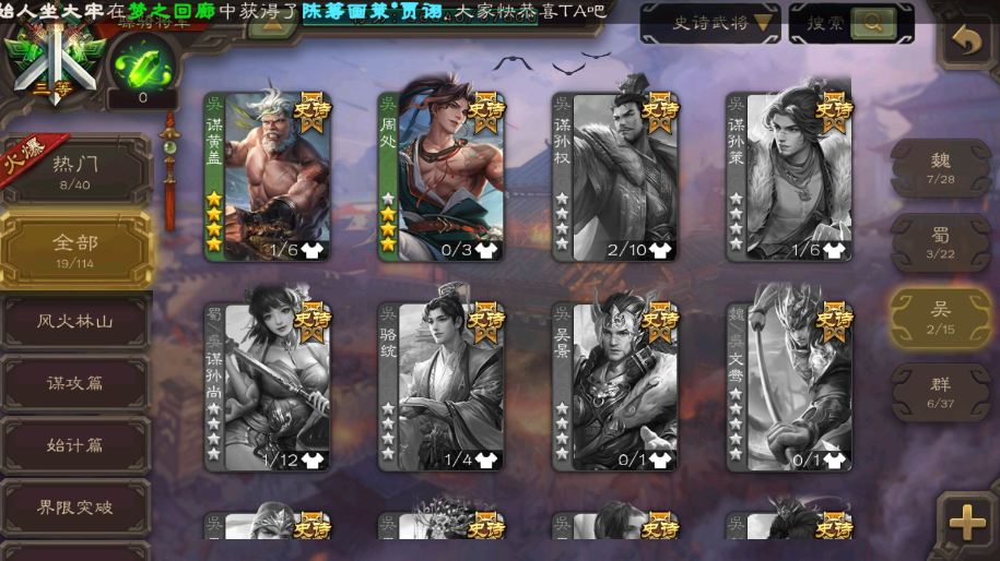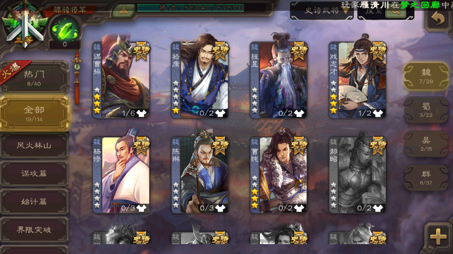 限制: 撤单率<80%才可租用此帐号装备描述:【有点将卡】一等大将军70史诗-动刘焉-回廊动徐荣-回廊动神甘宁动神赵云动界钟会马钧杜预大宝