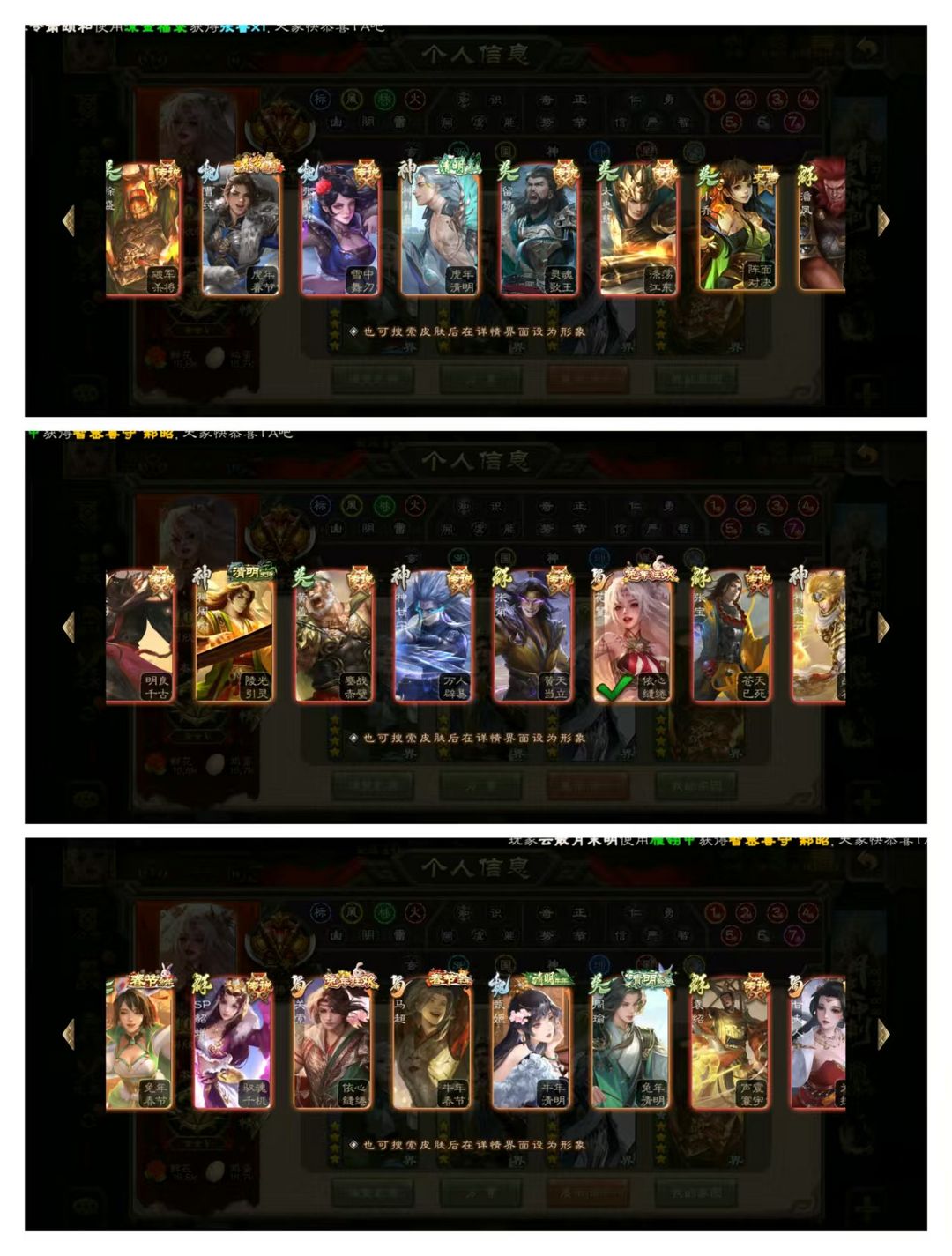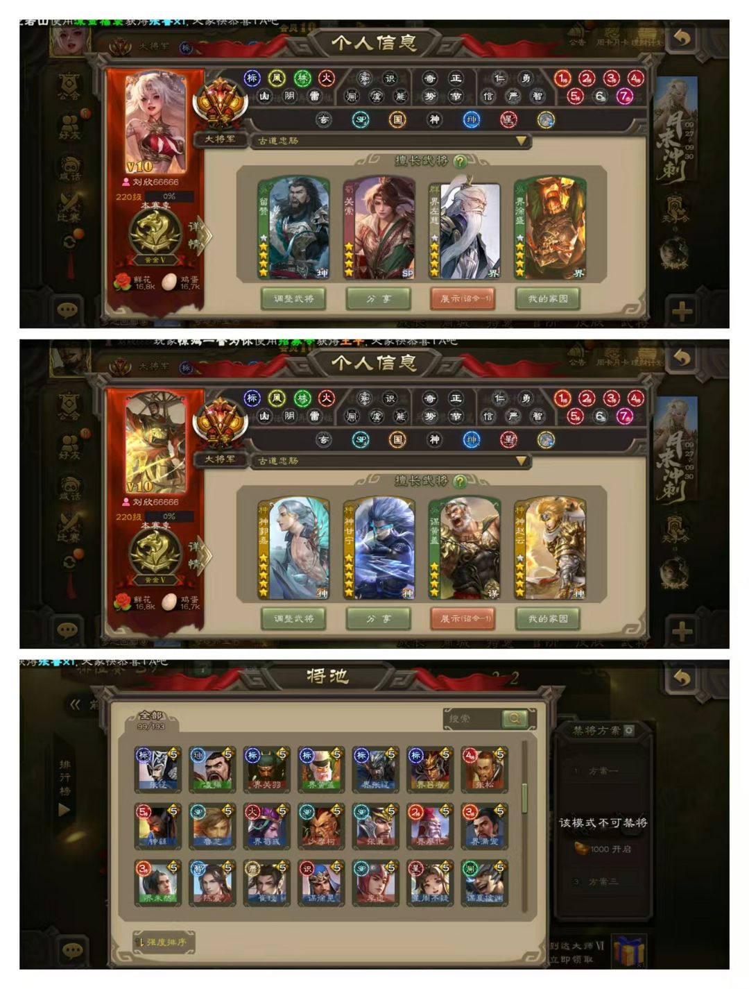 限制: 撤单率<19%才可租用此帐号装备描述:官方三等大将军,无卡,VIP10! 16四星玉龙:动神郭嘉动神甘宁动神赵云,动谋黄盖动界徐盛动留赞,金界左慈金界钟会,曹髦文鸯界沮授谋吕布戏志才许攸诸葛瞻! 42史诗武将,动花鬘,南华老仙神太史慈周群等! 23动皮75金皮185国战皮肤!