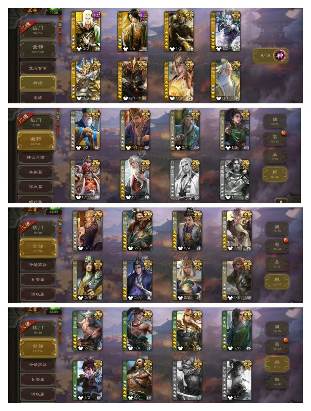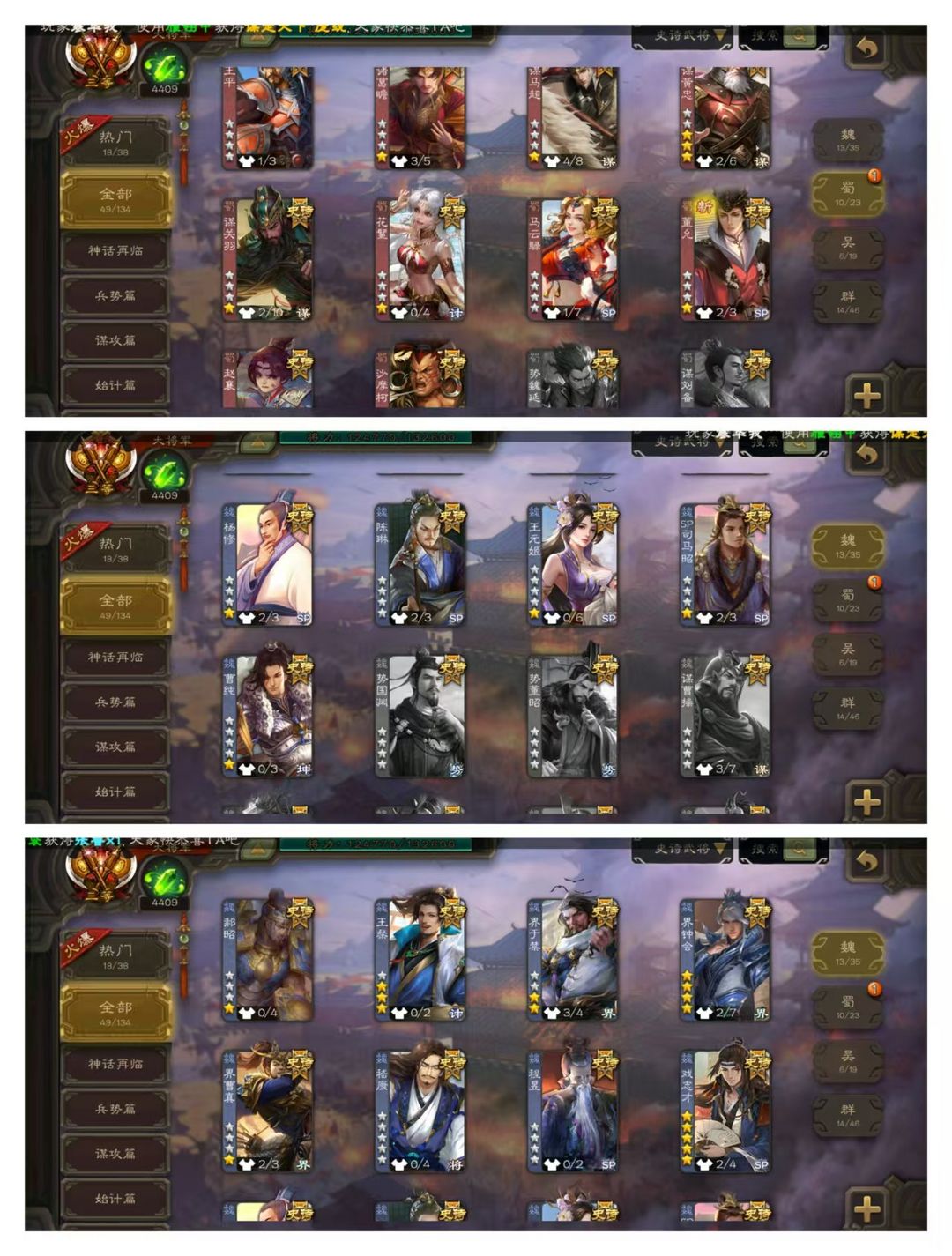 有卡【50史诗大将军】动神荀彧动神甘宁动界左慈动神赵云+谋关羽神华佗谋黄忠谋黄盖杜预王元姬界徐盛