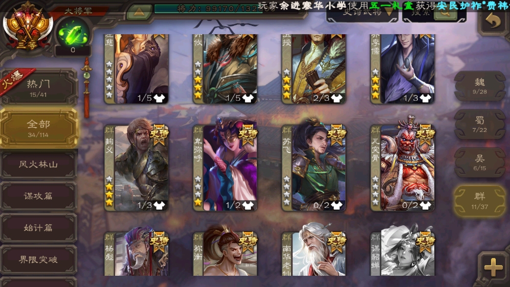 有点将卡】大将军◆双形态神郭嘉◆回廊动态文鸯杨彪◆界钟会◆动态谋诸葛亮◆谋黄盖◆界徐盛(大宝)界李儒