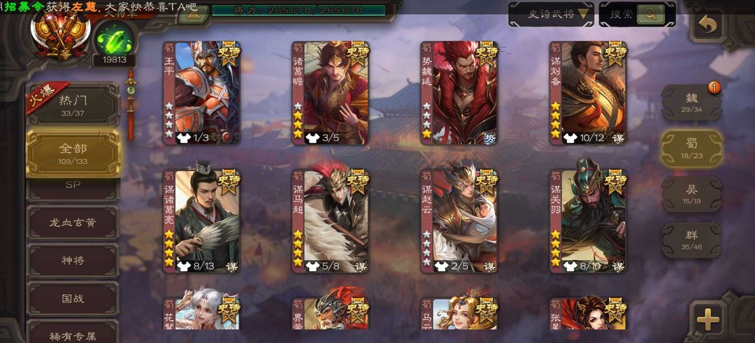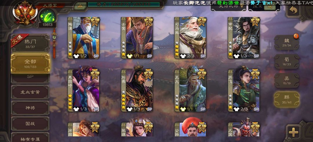 v17一等大将军109史诗155动皮❤️全神将❤️势魏延谋曹丕回廊十常侍刘焉曹髦谋诸葛回廊文鸯谋曹操