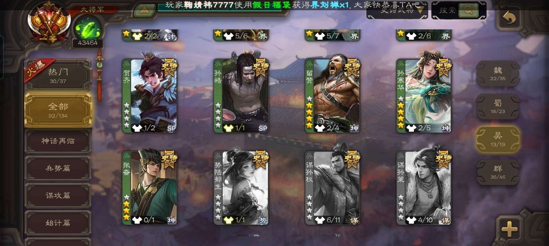 装备描述:禁止利用账号进行开挂、使用辅助违规软件诈骗等违规操作。高质量动态一等大将军 93 史诗135排位,28万金票,至臻双形态神郭嘉+双形态文鸯+双形态界钟会+双形态杜预,曹髦+势太史慈+阴间十常侍+动态司马昭+动态清河公主+动态谋诸葛亮+回廊动态谋黄忠+动态谋夏侯氏+以身证道动态谋黄盖+奇门动态孙寒华+大攻车张奋+回廊动态界沮授+动态神司马懿+回廊动态神孙策,至臻神郭嘉+回廊动态神荀彧+动态神甘宁+动态刘焉,动态羊徽瑜+回廊动态大宝+动态灵魂留赞+动态戏志才+曹婴+拍手动态王元姬+回廊动态马钧+骆统许攸+摇铃动态界左慈+动态界李儒+动态白马+动态卑弥呼+杨彪+五秒男祢衡+庞德公+动态南华老仙+动态星黄忠+星董卓+动态神赵云+动态神吕布+动态神陆逊+奶龙+势太+势于吉+势魏延