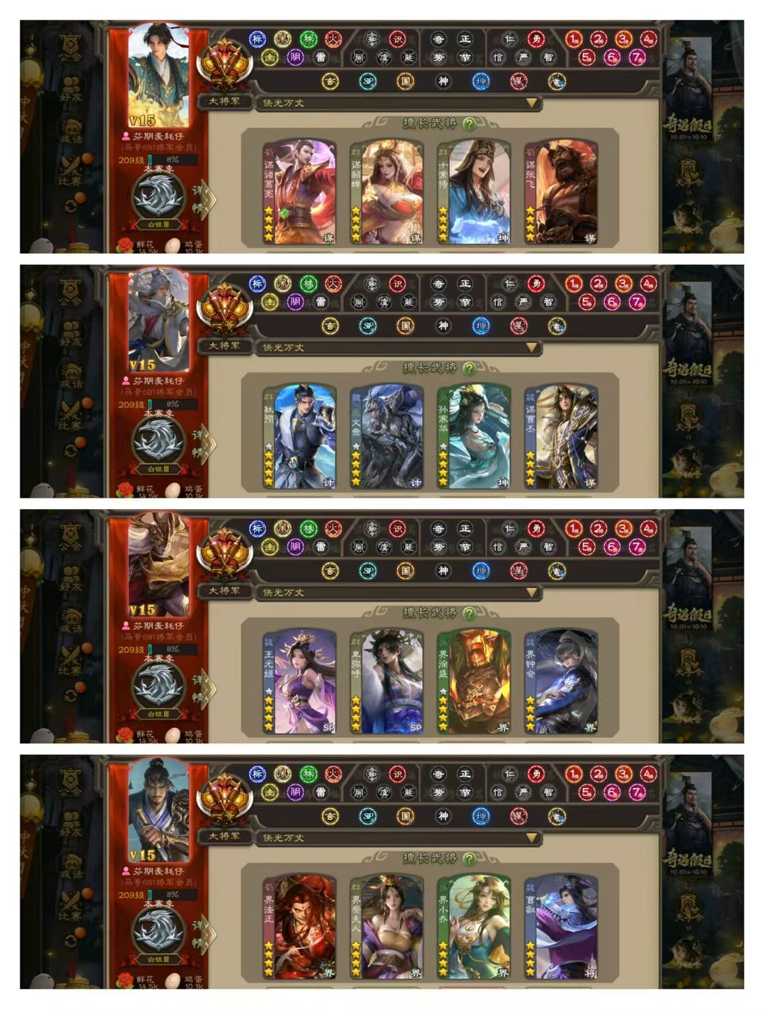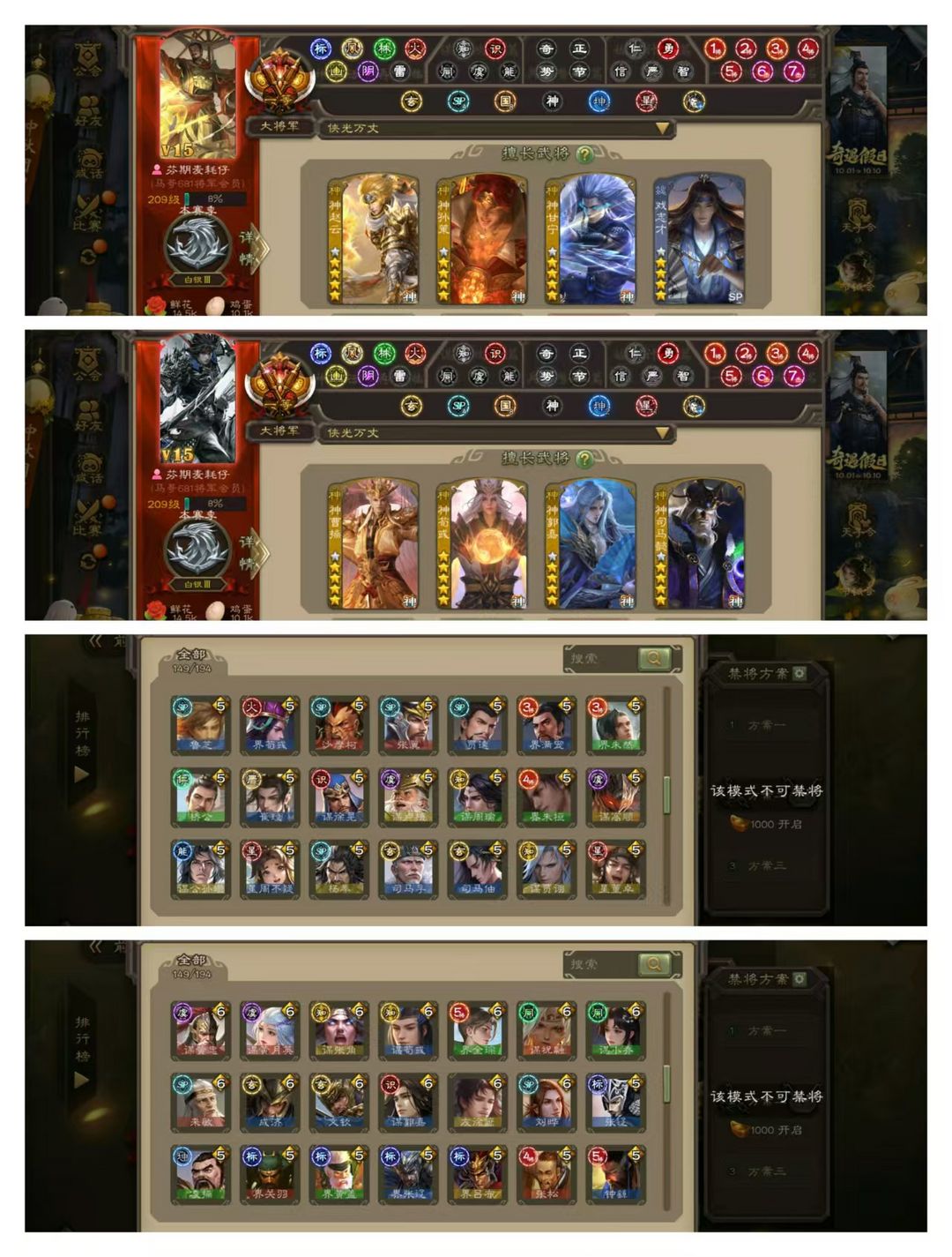 限制: 撤单率<19%才可租用此帐号装备描述:官方一等大将军,有卡,VIP15! 25四星玉龙:回廊双形态至臻动十常侍,回廊双形态至臻动神郭嘉,回廊双形态至臻动界钟会,回廊动神曹操,回廊动神荀彧,回廊动神孙策,回廊动文鸯,回廊动谋貂蝉,回廊动界徐盛,回廊动杜预,回廊动王元姬,回廊动卑弥呼,手办动谋小乔,奇门动孙寒华,动神司马懿动神甘宁动神赵云动戏志才,动谋诸葛亮动谋曹丕,曹髦! 80史诗武将:回廊动马钧,回廊动骆统,回廊动南华老仙,回廊动谋黄忠,回廊动谋黄盖,回廊动聚义,回廊动界李儒,回廊动神太史慈,奇门动花鬘,冠绝天下动神吕布,动谋关羽动司马昭动清河公主,动周处动留赞动界左慈动神陆逊,金曹婴,祢衡鲍信阎象谋黄月英友徐庶! 150排位武将,92动皮220金皮255国战皮肤!