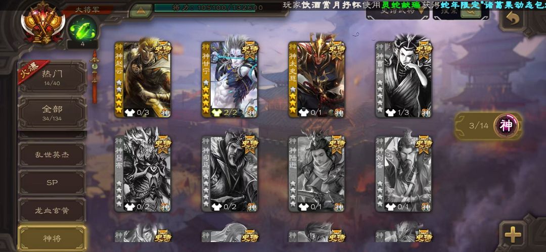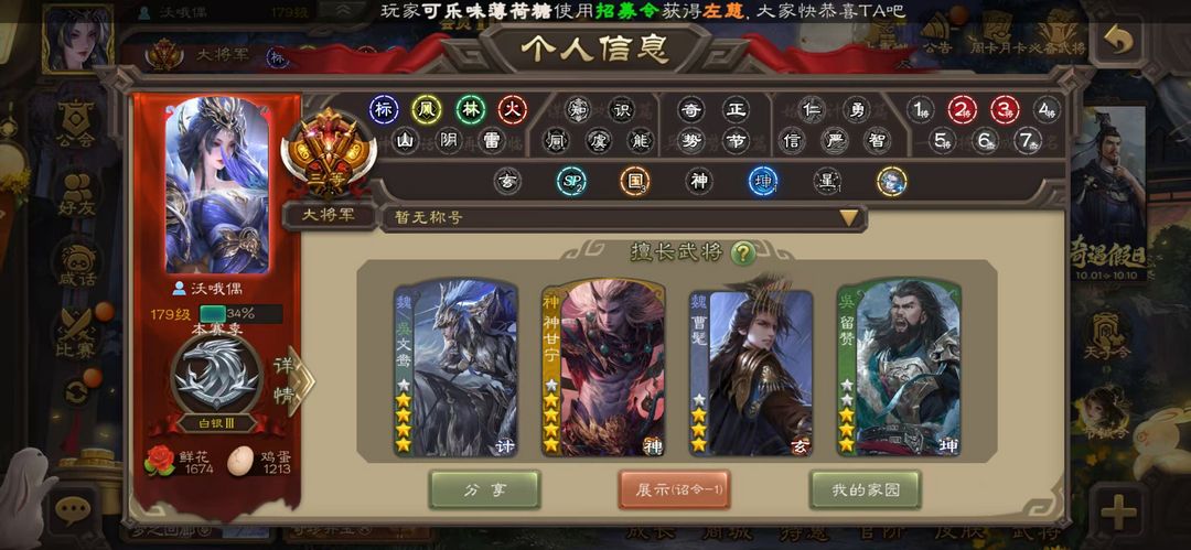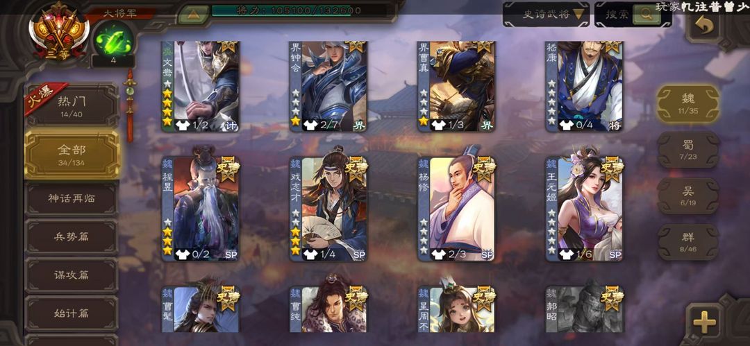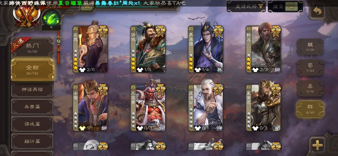 装备描述:星周不疑☆花鬘☆骆统☆动态周处☆界徐盛☆许攸☆动态白马☆庞德公☆星黄忠☆神太史慈